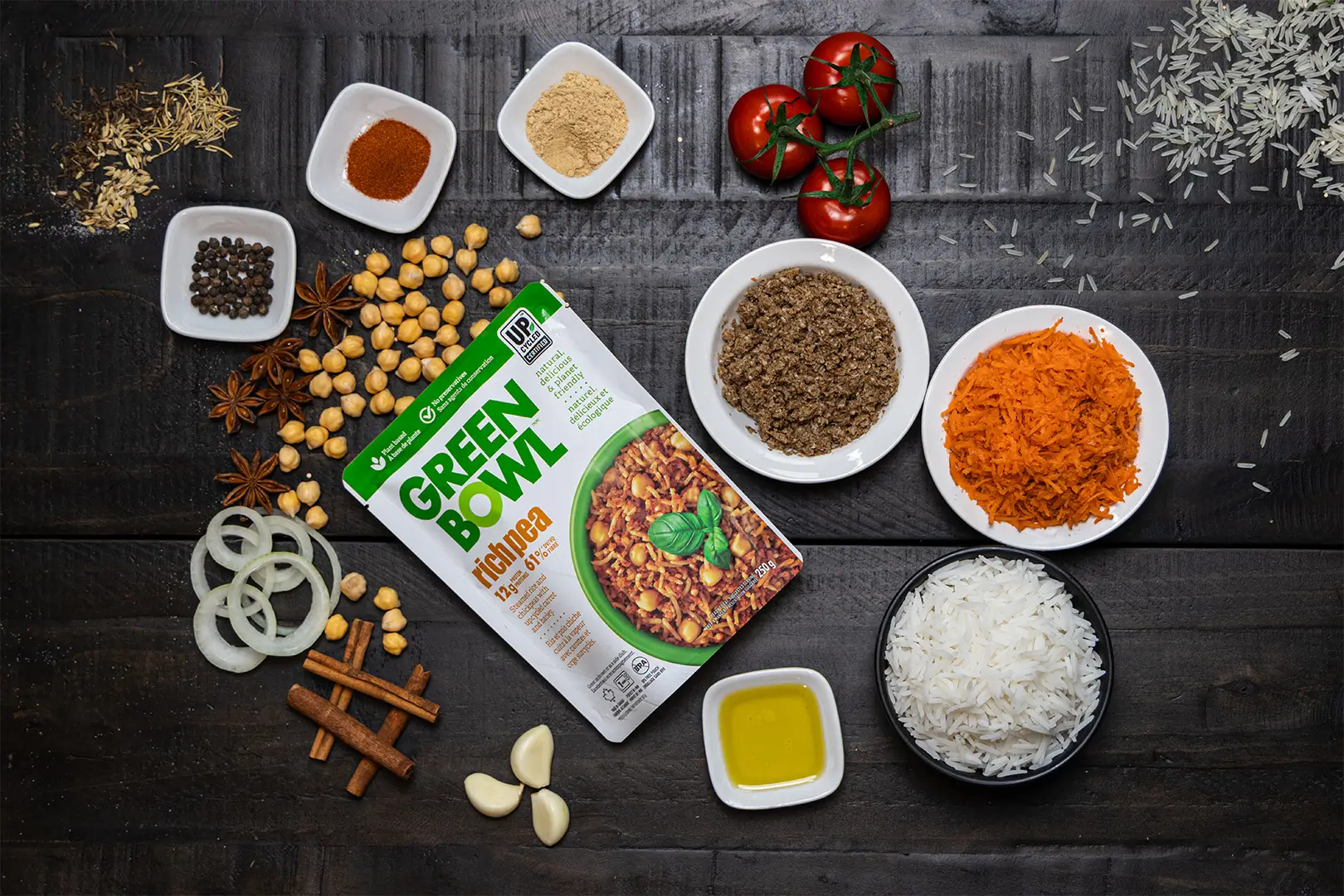 - RichPea – Steamed Rice & Chickpeas with upcycled carrot and barley